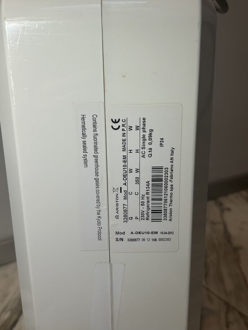 | Capacità di Deumidificazione | Umidità asportata 10 litri/giorno. |
